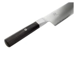 Das Santoku ist das japanische Pendant zum europäischen Kochmesser, mit ihm kannst du auch größere Portionen Fisch, Fleisch oder Gemüse entspannt zubereiten Das Küchenmesser hat ein ergonomisches Griffdesign aus Pakkaholz und bietet so beim Schneiden viel Komfort ohne Ermüden.